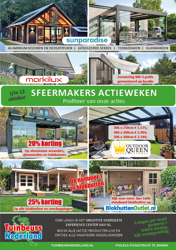 - 20% korting op alle aluminium veranda’s, terrasoverkappingen en glaswanden